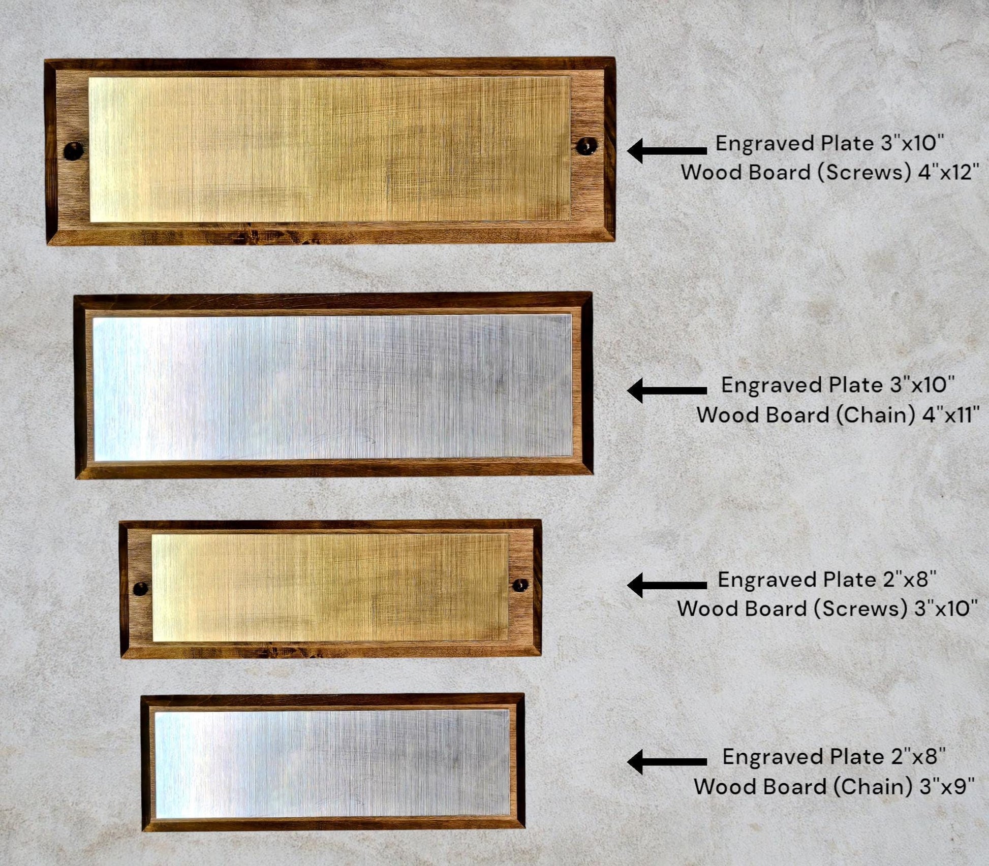 - 3" x 10" engraved plate on either: